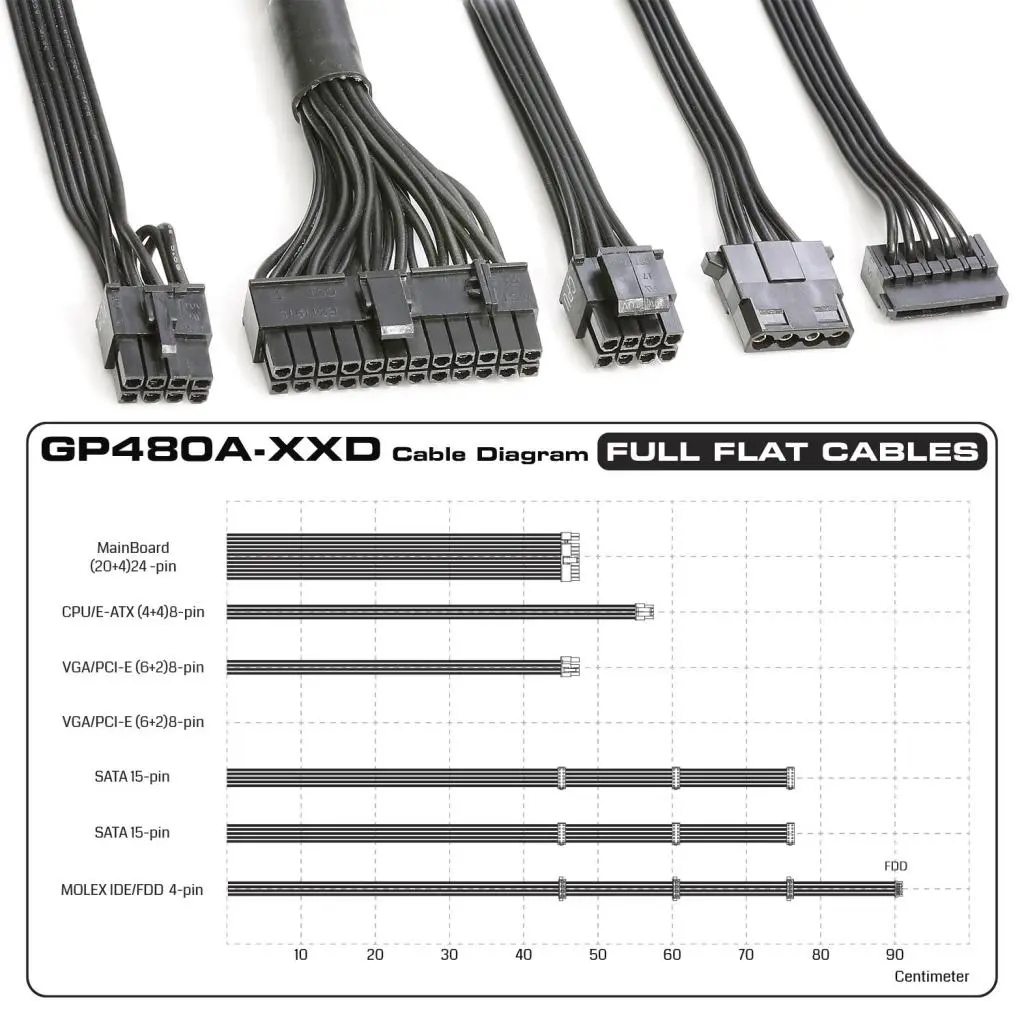 در پاورهای سری EUD از کابلهای خروجی تماما مشکی و از نوع فلت (تخت) استفاده شده است. کابلهای فلت نسبت به کابل های رشته ای متداول، انعطاف پذیرترند و کابل کشی قطعات را آسانتر کرده که نهایتا سبب زیبایی بیشتر اسمبل سیستم و تهویه بهتر هوای داخل کیس خواهد شد.