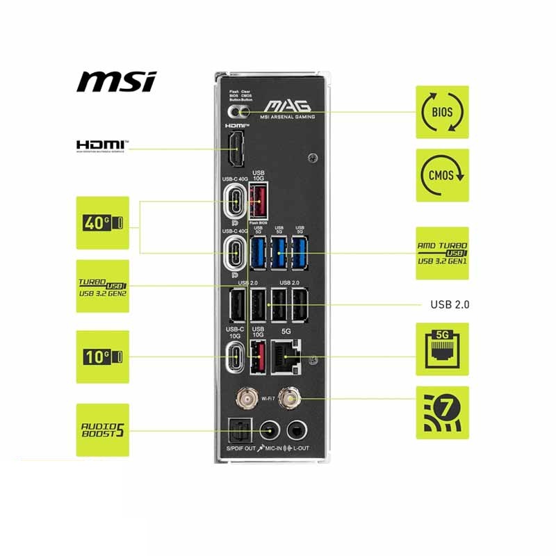 چیپستAMD X870EسوکتAM5پشتیبانی از پردازندهAMD Ryzen™ 9000/8000/7000شبکه بیسیم:Wi-Fi 7 و Bluetooth® 5.4